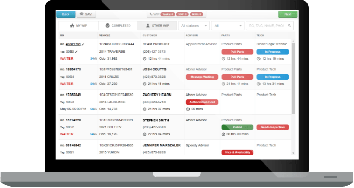 Keep internal and customer communication in front of the car, answering questions before they’re asked, offering real-time transparency, and ensuring accountability. Dealerlogix’s communication platform encompasses customer, advisor, counterperson, and tech, providing the key people with the information needed to execute efficiently.